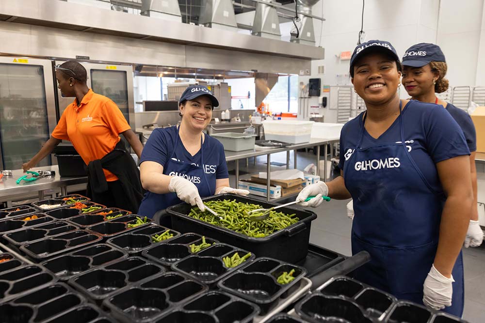 GL Homes COO Marcie DePlaza works with GL Homes volunteers to prepare meals for homebound seniors. Photo credit: Capehart Through GL Homes’ Summer of Service, 16 GL Homes employees volunteered…